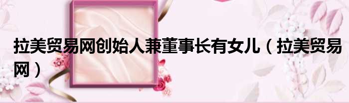 拉美贸易网创始人兼董事长有女儿(拉美贸易网)