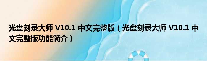 光盘刻录大师 V10.1 中文完整版(光盘刻录大师 V10.1 中文完整版功能简介)