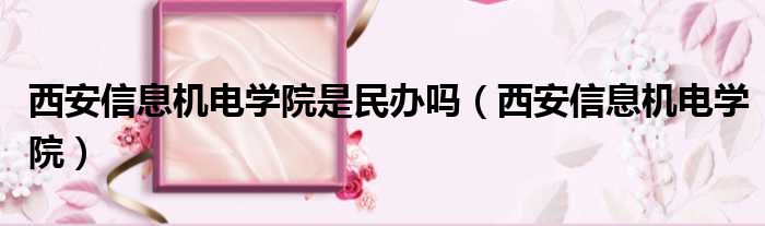 导读 大家好,今天小六子来为大家解答以下的问题,关于西安信息机电学院是民办吗,西安信息机电学院这个很多人还不知道,现在让我们一起来看看吧