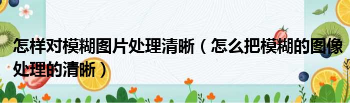 怎样对模糊图片处理清晰(怎么把模糊的图像处理的清晰)
