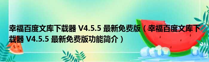 幸福百度文库下载器 V4.5.5 最新免费版(幸福百度文库下载器 V4.5.5 最新免费版功能简介)