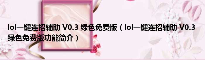 导读 大家好,关于lol一键连招辅助 V0 3 绿色免费版,lol一键连招辅助 V0 3 绿色免费版功能简介这个很多人还不知道,小勒来为大家解答以上的问