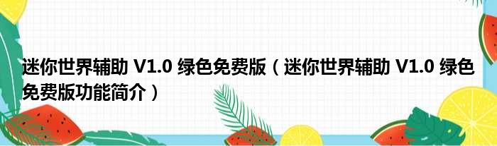 迷你世界辅助 V1.0 绿色免费版(迷你世界辅助 V1.0 绿色免费版功能简介)