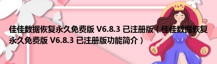 佳佳数据恢复永久免费版 V6.8.3 已注册版(佳佳数据恢复永久免费版 V6.8.3 已注册版功能简介)