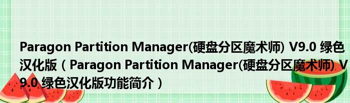 Paragon Partition Manager(硬盘分区魔术师) V9.0 绿色汉化版(Paragon Partition Manager(硬盘分区魔术师) V9.0 绿色汉化版功能简介)