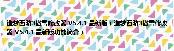 造梦西游3傲雪修改器 V5.4.1 最新版(造梦西游3傲雪修改器 V5.4.1 最新版功能简介)