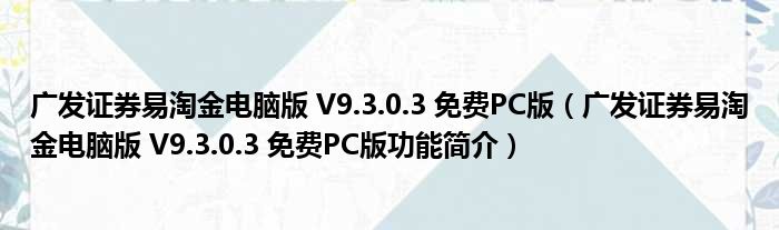 广发证券易淘金电脑版 V9.3.0.3 免费PC版(广发证券易淘金电脑版 V9.3.0.3 免费PC版功能简介)