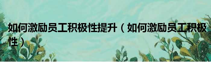 导读 大家好,今天小六子来为大家解答以下的问题,关于如何激励员工积极性提升,如何激励员工积极性这个很多人还不知道,现在让我们一起来看看吧