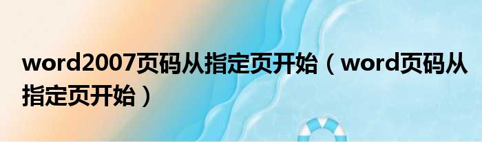 导读 大家好,今天小六子来为大家解答以下的问题,关于word2007页码从指定页开始,word页码从指定页开始这个很多人还不知道,现在让我们一起来看