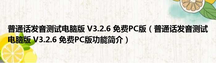 普通话发音测试电脑版 V3.2.6 免费PC版(普通话发音测试电脑版 V3.2.6 免费PC版功能简介)