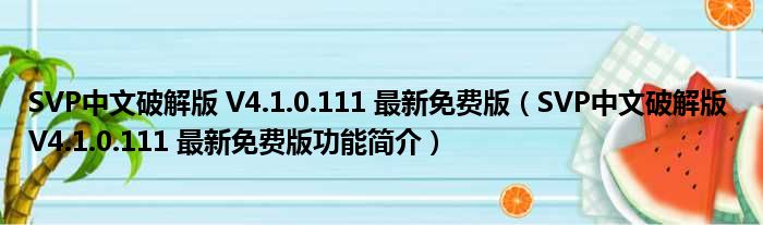 SVP中文破解版 V4.1.0.111 最新免费版(SVP中文破解版 V4.1.0.111 最新免费版功能简介)