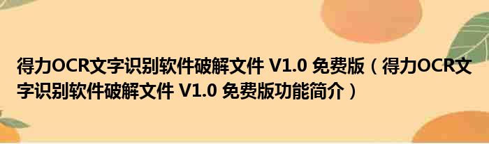 得力OCR文字识别软件破解文件 V1.0 免费版(得力OCR文字识别软件破解文件 V1.0 免费版功能简介)