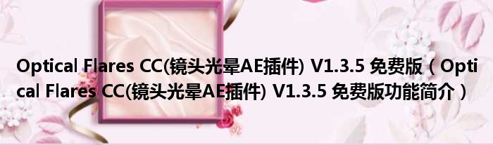 Optical Flares CC(镜头光晕AE插件) V1.3.5 免费版(Optical Flares CC(镜头光晕AE插件) V1.3.5 免费版功能简介)