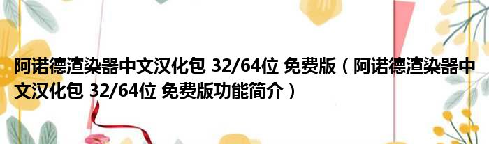 导读 大家好,关于阿诺德渲染器中文汉化包 32 64位 免费版,阿诺德渲染器中文汉化包 32 64位 免费版功能简介这个很多人还不知道,小勒来为大家