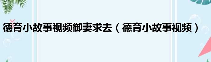 大家好,今天小六子来为大家解答以下的问题,关于德育小故事视频御妻求去,德育小故事视频这个很多人还不知道,现在让我们一起来看看吧!