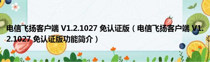 电信飞扬客户端 V1.2.1027 免认证版(电信飞扬客户端 V1.2.1027 免认证版功能简介)