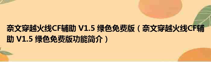 奈文穿越火线CF辅助 V1.5 绿色免费版(奈文穿越火线CF辅助 V1.5 绿色免费版功能简介)