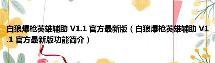 白狼爆枪英雄辅助 V1.1 官方最新版(白狼爆枪英雄辅助 V1.1 官方最新版功能简介)