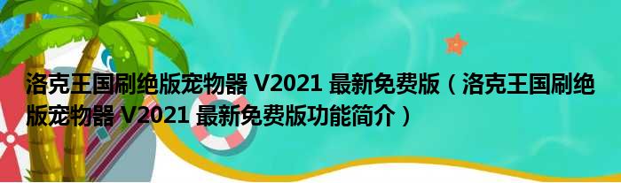 导读 大家好,关于洛克王国刷绝版宠物器 V2021 最新免费版,洛克王国刷绝版宠物器 V2021 最新免费版功能简介这个很多人还不知道,小勒来为大家
