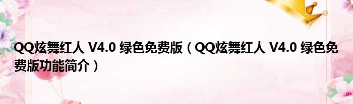 导读 大家好,关于QQ炫舞红人 V4 0 绿色免费版,QQ炫舞红人 V4 0 绿色免费版功能简介这个很多人还不知道,小勒来为大家解答以上的问题,现在让