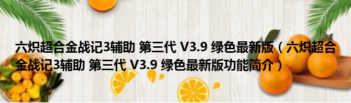 六炽超合金战记3辅助 第三代 V3.9 绿色最新版(六炽超合金战记3辅助 第三代 V3.9 绿色最新版功能简介)