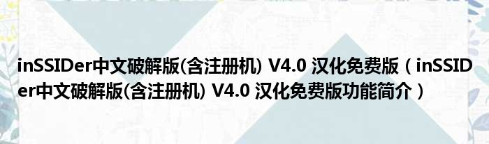 inSSIDer中文破解版(含注册机) V4.0 汉化免费版(inSSIDer中文破解版(含注册机) V4.0 汉化免费版功能简介)