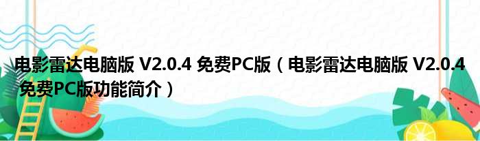 电影雷达电脑版 V2.0.4 免费PC版(电影雷达电脑版 V2.0.4 免费PC版功能简介)