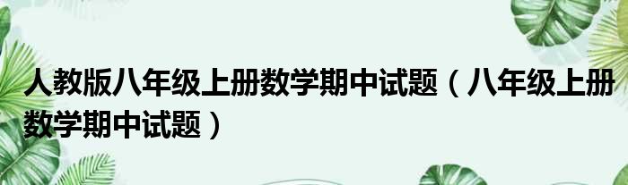 大家好,今天小六子来为大家解答以下的问题,关于人教版八年级上册数学期中试题,八年级上册数学期中试题这个很多人还不知道,现在让我们一起来看看吧!