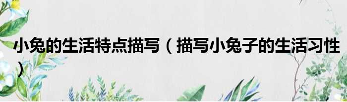 导读 大家好,今天小六子来为大家解答以下的问题,关于小兔的生活特点描写,描写小兔子的生活习性这个很多人还不知道,现在让我们一起来看看吧!1