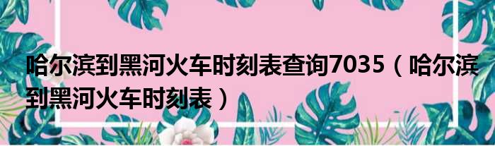 导读 大家好,今天小六子来为大家解答以下的问题,关于哈尔滨到黑河火车时刻表查询7035,哈尔滨到黑河火车时刻表这个很多人还不知道,现在让我们