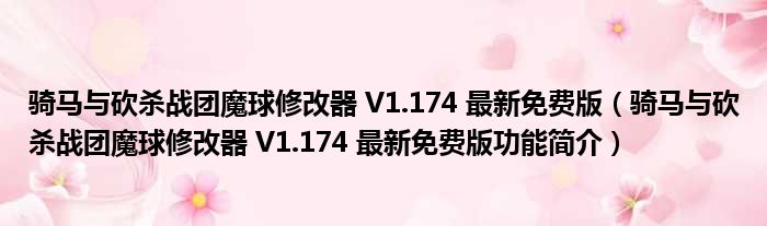 骑马与砍杀战团魔球修改器 V1.174 最新免费版(骑马与砍杀战团魔球修改器 V1.174 最新免费版功能简介)