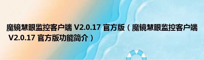 魔镜慧眼监控客户端 V2.0.17 官方版(魔镜慧眼监控客户端 V2.0.17 官方版功能简介)