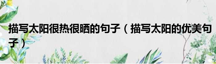 描写太阳很热很晒的句子(描写太阳的优美句子)