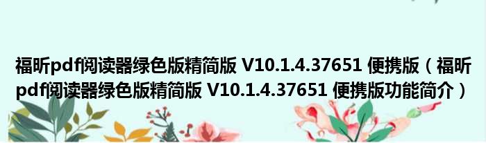 福昕pdf阅读器绿色版精简版 V10.1.4.37651 便携版(福昕pdf阅读器绿色版精简版 V10.1.4.37651 便携版功能简介)