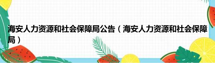 海安人力资源和社会保障局公告(海安人力资源和社会保障局)