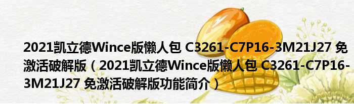 2021凯立德Wince版懒人包 C3261-C7P16-3M21J27 免激活破解版(2021凯立德Wince版懒人包 C3261-C7P16-3M21J27 免激活破解版功能简介)