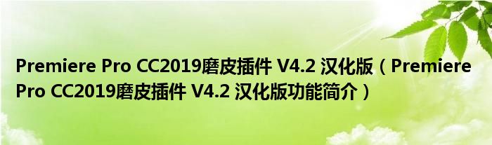 Premiere Pro CC2019磨皮插件 V4.2 汉化版(Premiere Pro CC2019磨皮插件 V4.2 汉化版功能简介)