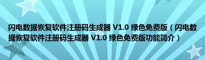 闪电数据恢复软件注册码生成器 V1.0 绿色免费版(闪电数据恢复软件注册码生成器 V1.0 绿色免费版功能简介)