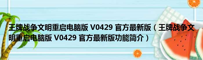王牌战争文明重启电脑版 V0429 官方最新版(王牌战争文明重启电脑版 V0429 官方最新版功能简介)