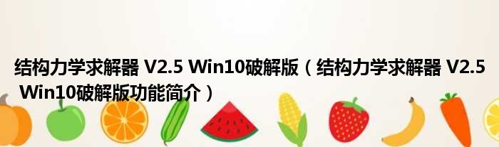 结构力学求解器 V2.5 Win10破解版(结构力学求解器 V2.5 Win10破解版功能简介)