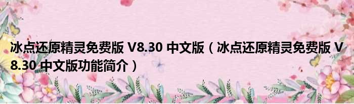 冰点还原精灵免费版 V8.30 中文版(冰点还原精灵免费版 V8.30 中文版功能简介)