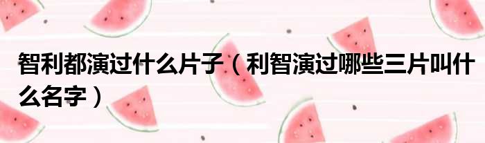 导读 大家好,今天小六子来为大家解答以下的问题,关于智利都演过什么片子,利智演过哪些三片叫什么名字这个很多人还不知道,现在让我们一起来看