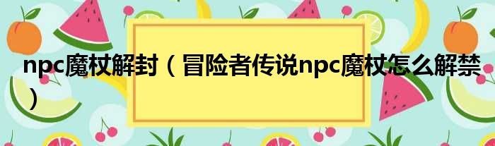 npc魔杖解封(冒险者传说npc魔杖怎么解禁)