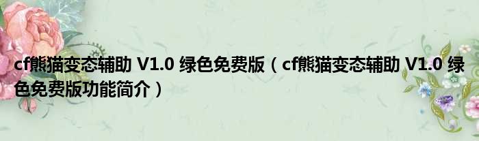cf熊猫变态辅助 V1.0 绿色免费版(cf熊猫变态辅助 V1.0 绿色免费版功能简介)