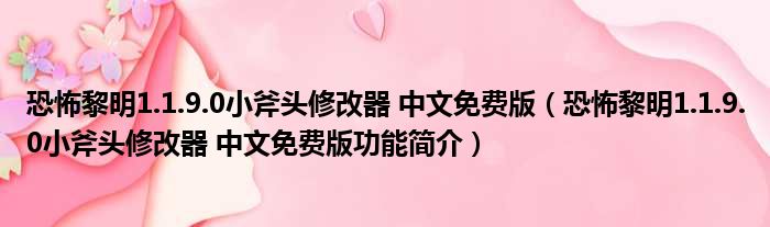 恐怖黎明1.1.9.0小斧头修改器 中文免费版(恐怖黎明1.1.9.0小斧头修改器 中文免费版功能简介)