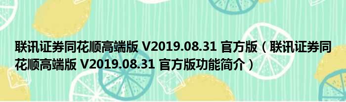 联讯证券同花顺高端版 V2019.08.31 官方版(联讯证券同花顺高端版 V2019.08.31 官方版功能简介)