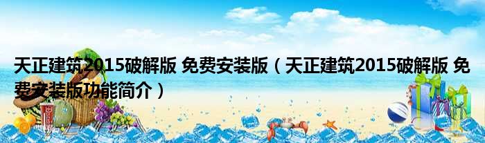 天正建筑2015破解版 免费安装版(天正建筑2015破解版 免费安装版功能简介)