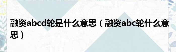 融资abcd轮是什么意思(融资abc轮什么意思)