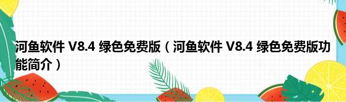 导读 大家好,关于河鱼软件 V8 4 绿色免费版,河鱼软件 V8 4 绿色免费版功能简介这个很多人还不知道,小勒来为大家解答以上的问题,现在让我们