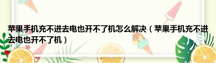 苹果手机充不进去电也开不了机怎么解决(苹果手机充不进去电也开不了机)